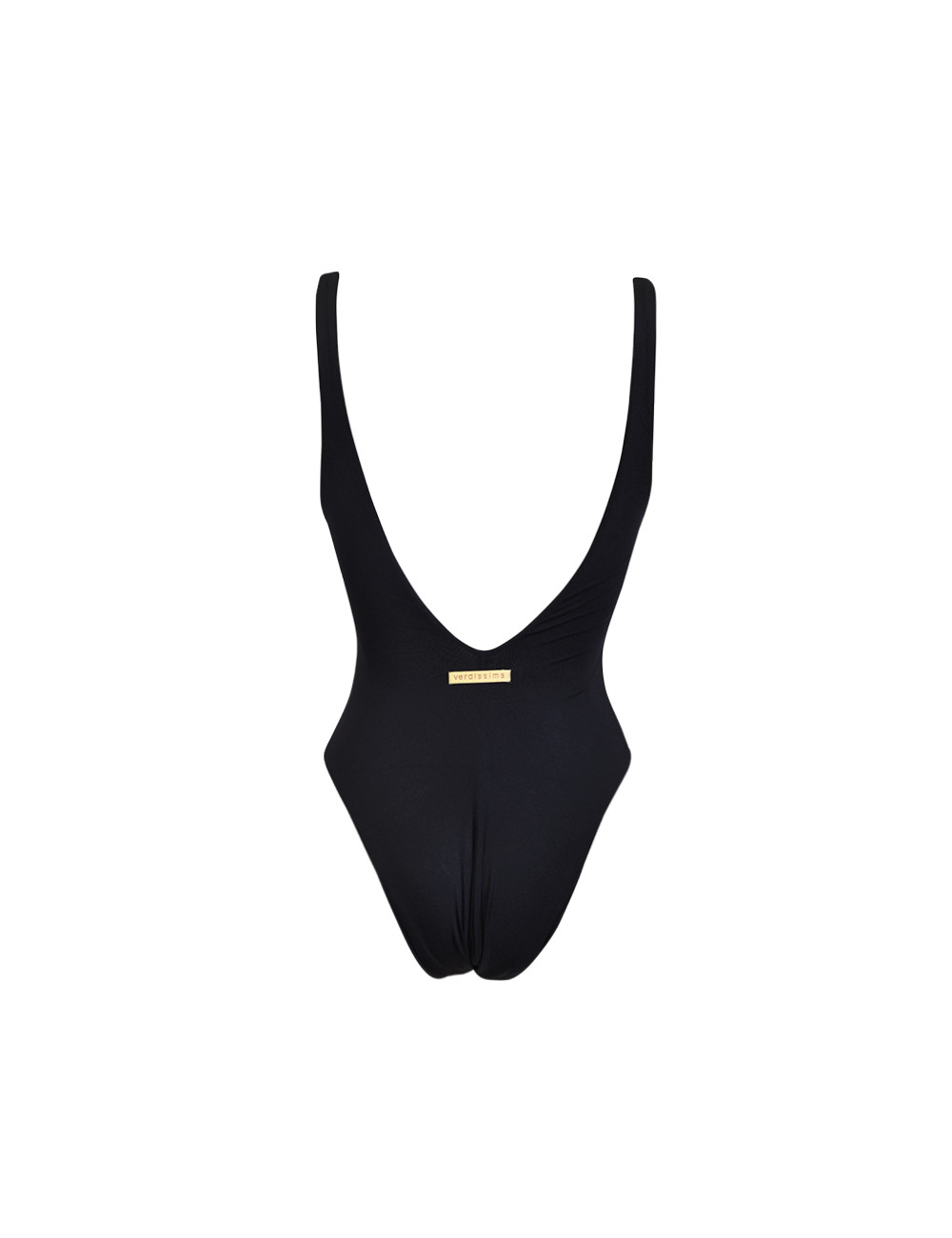 One-piece swimsuit made of shiny lycra declined in bright shades. Minimal design characterized by the deep neckline on the back